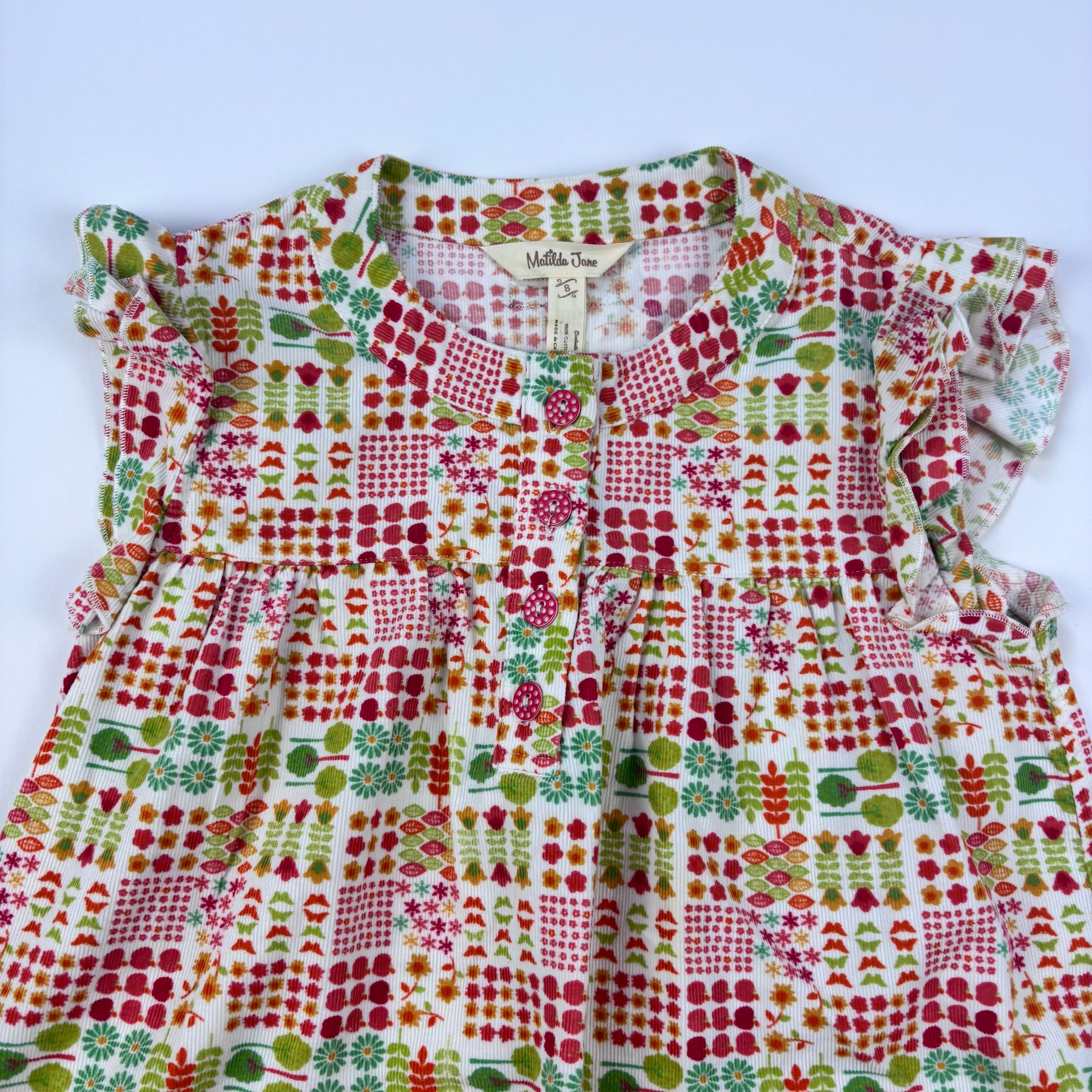 - Colour - Red, green and orange design on white backgroun