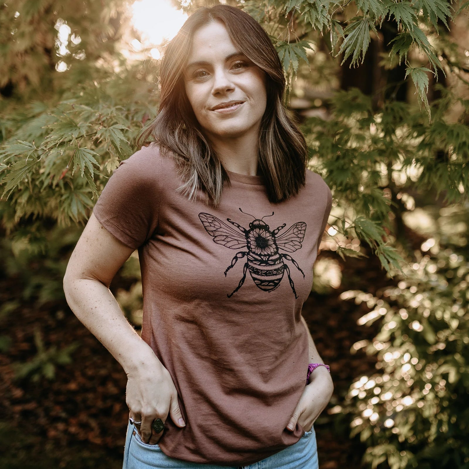 West Coast Karma - Sunflower Bee Tee Relaxed Fit Tee in Chestnut