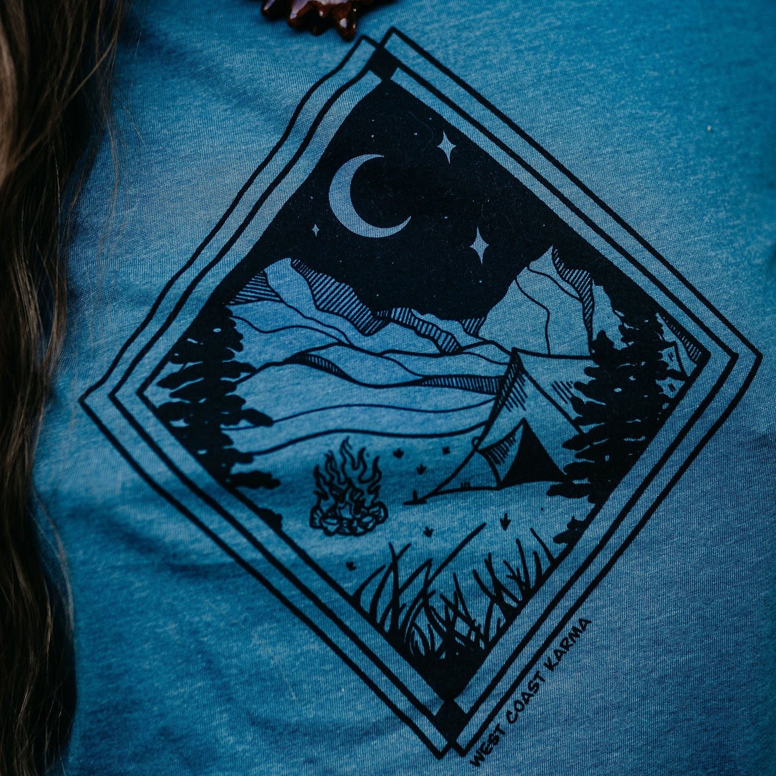 West Coast Karma - Camping Relaxed Fit Tee - Deep Teal