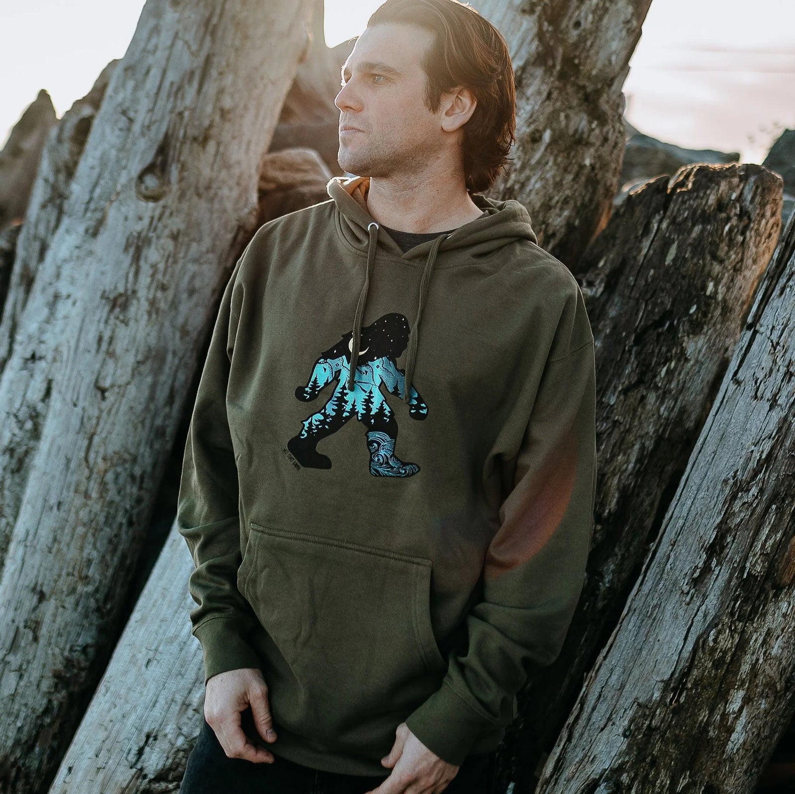 West Coast Karma - Sasquatch Northern Lights in Army Green