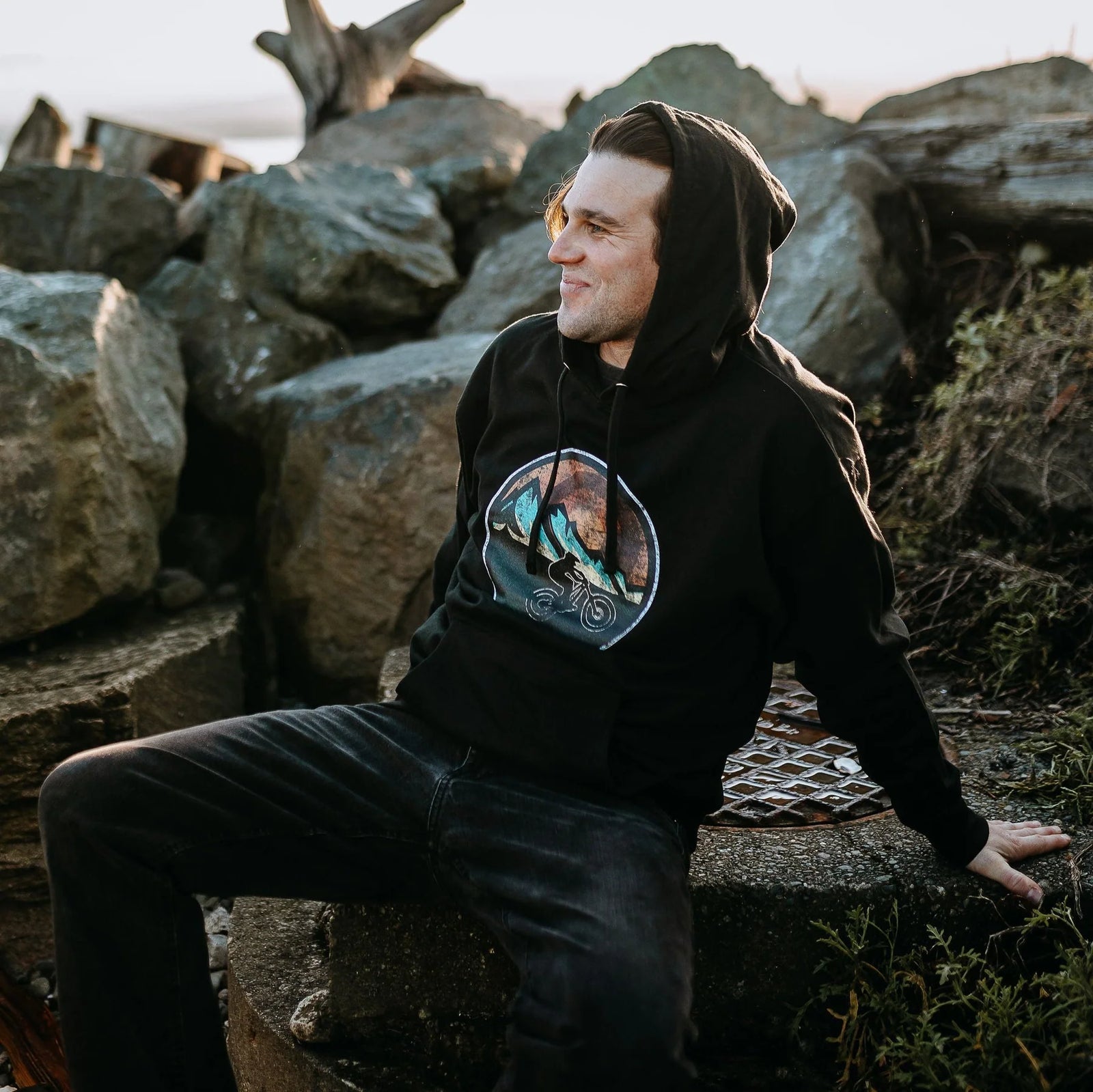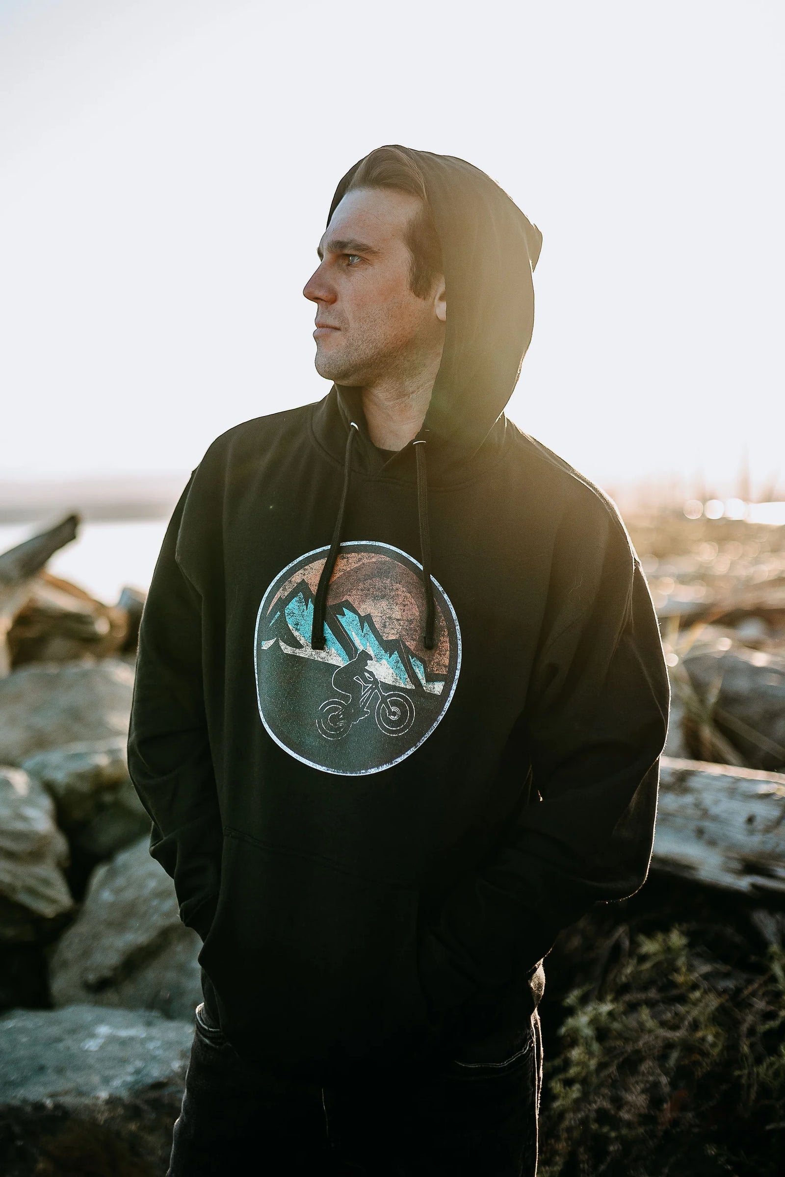 West Coast Karma - Retro Mountain Bike Hoodie in Black