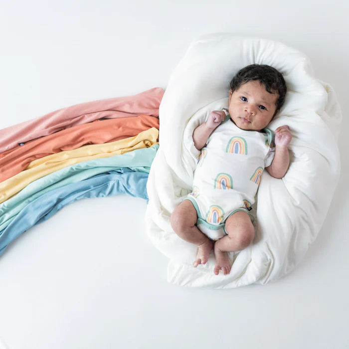 Kyte Baby's bamboo bodysuits are an essential piece in every little one’s wardrobe. Silky smooth and stretchy, these bodysuits work as a standalone outfit, but also coordinate perfectly with all of Kyte Baby's products. Breathable fabric keeps baby the perfect temperature, and a classic snap closure makes diaper changes a breeze!