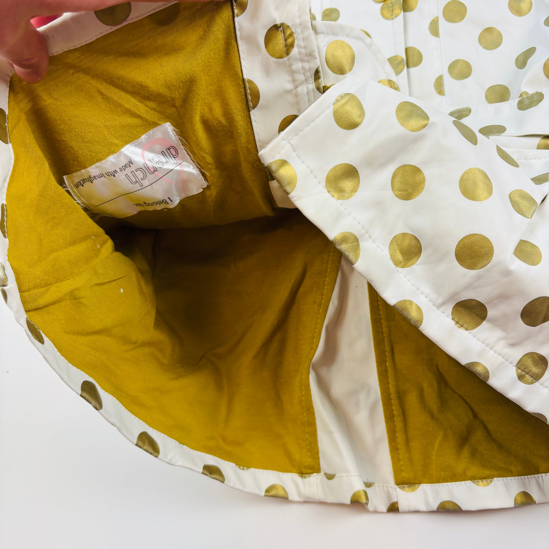 - Colour -White with gold polkdots