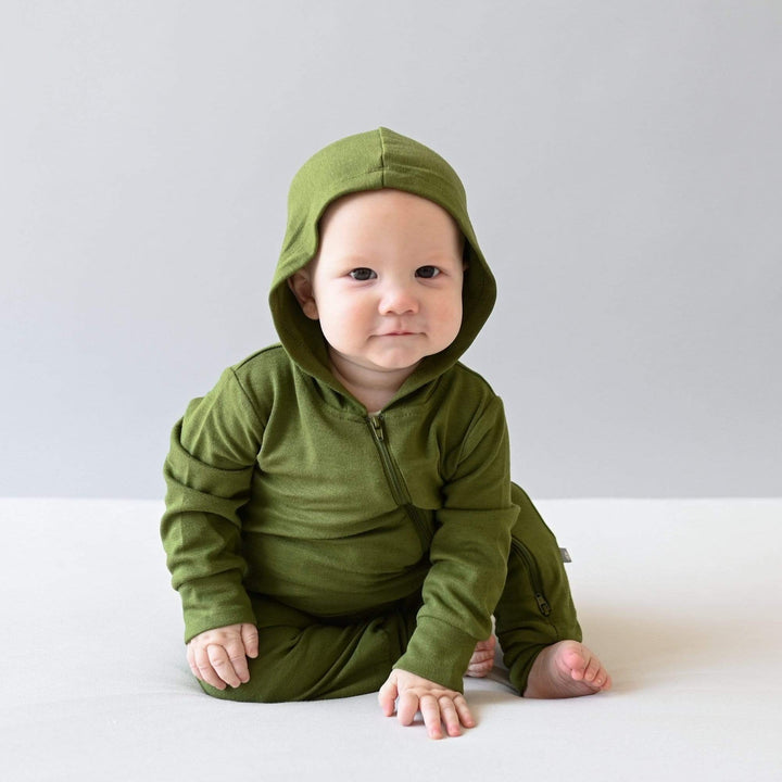 Keep the cold out and the heat in with our hooded zippered romper. Part of our bamboo jersey collection, this hooded romper is made from ultra soft, breathable, thick bamboo jersey that feels like the warmest of hugs. The built-in hood keeps little heads and ears nice and cozy on windy days, so you can rest easier knowing your little one is comfortably dressed.