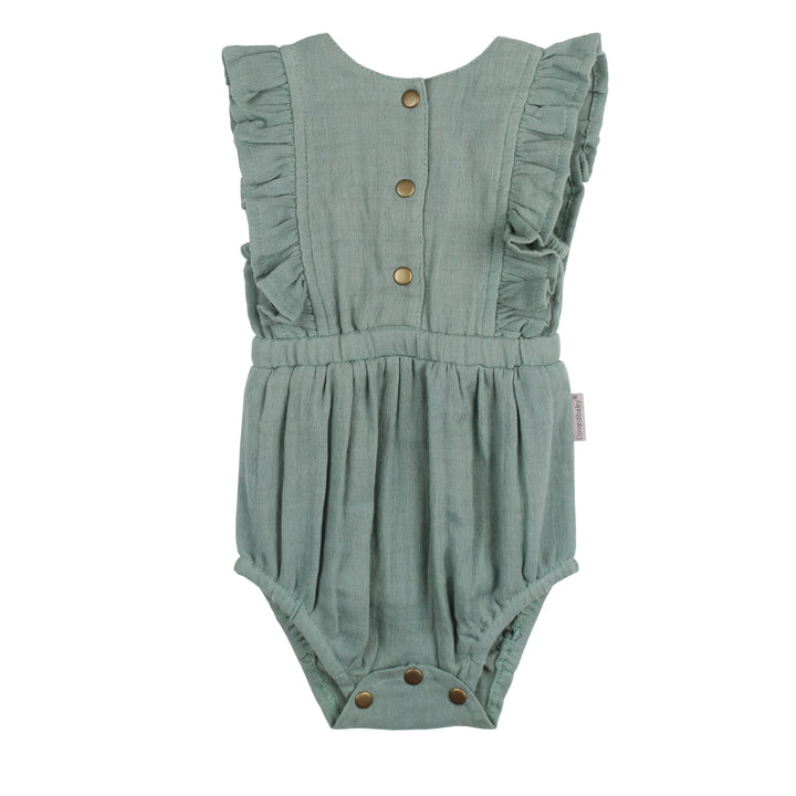 - flat brass snaps at front for easy dressing, with a wider bottom to cover even cloth diapers