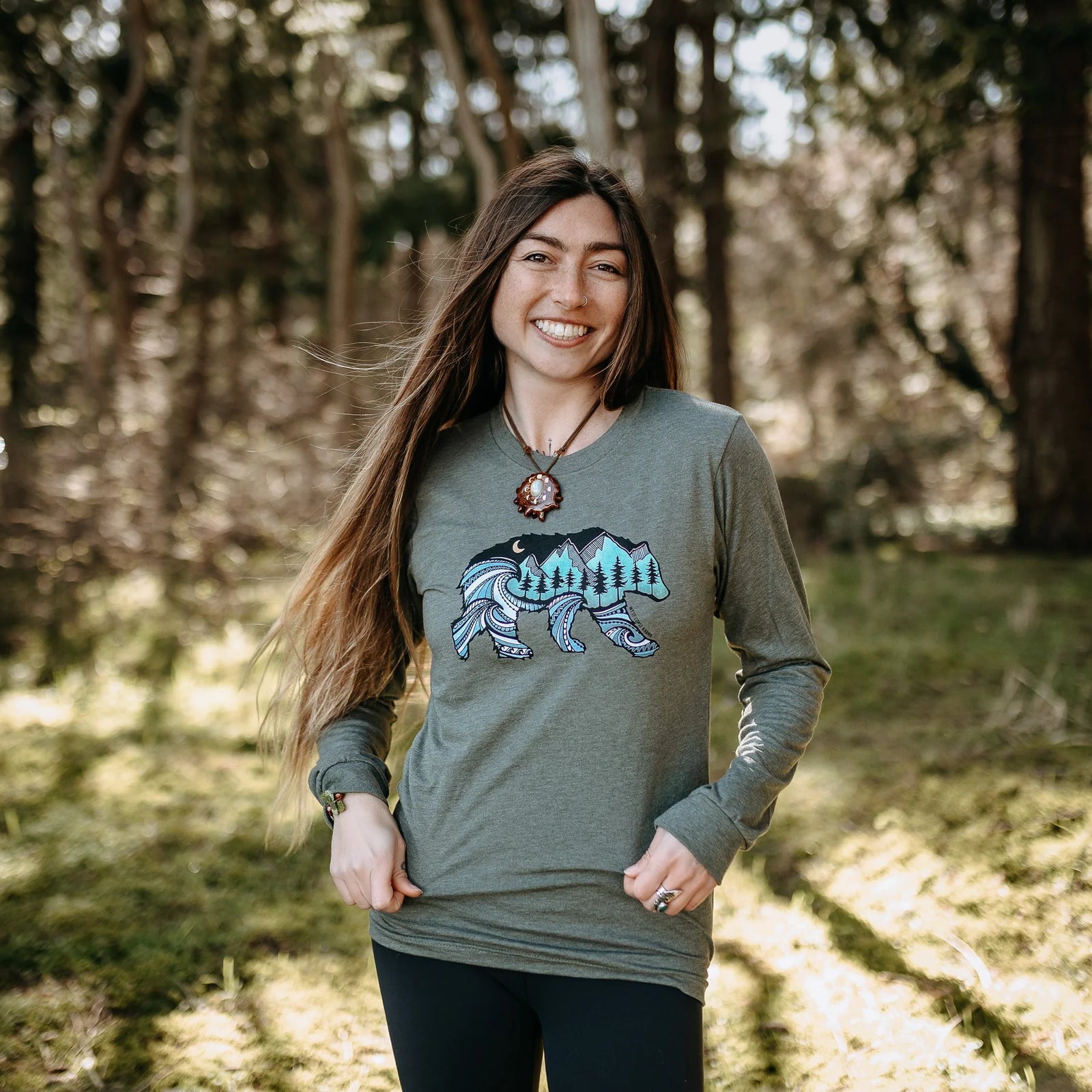 West Coast Karma - Mycelium Long Sleeve Unisex Tee in Forest Green