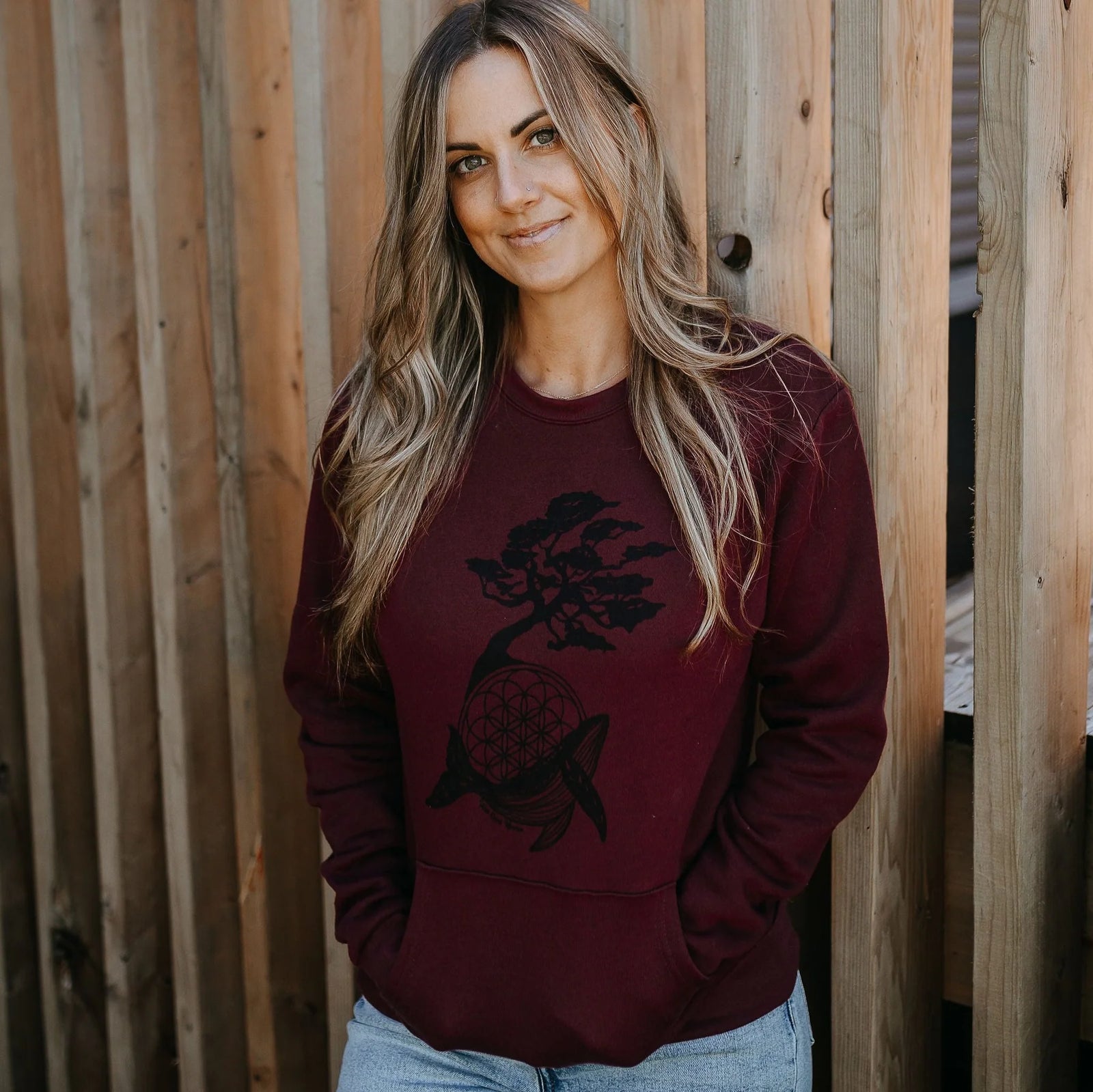 West Coast Karma - Arbutus Whale Pocket Crew Sweatshirt in Maroon