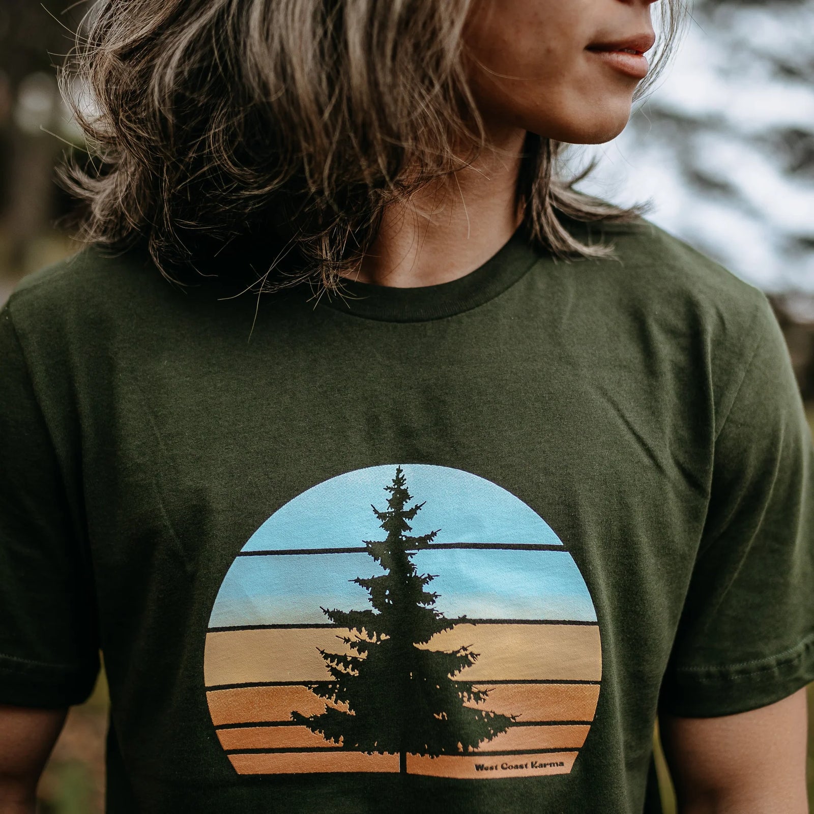 West Coast Karma - Retro Tree Tee in Dark Olive